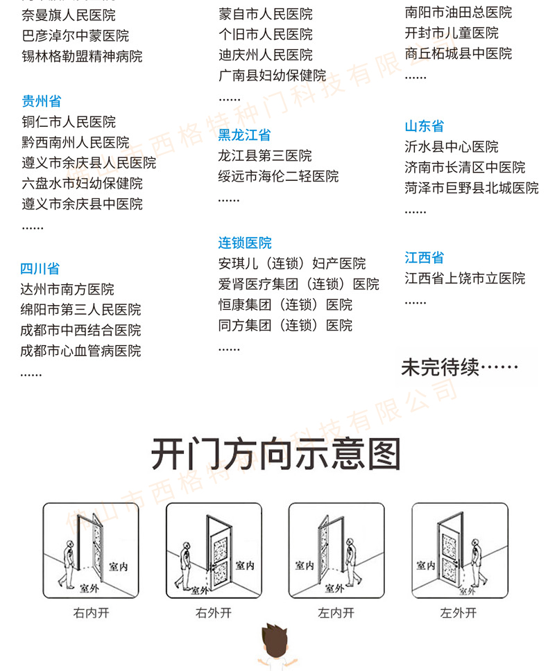 產(chǎn)品簡介:西格,多年來專注醫(yī)院門的生產(chǎn)與研發(fā),各種類、顏色的醫(yī)院門均可定制,歡迎咨詢。 產(chǎn)品價格:面議 咨詢熱線:400-6768-789