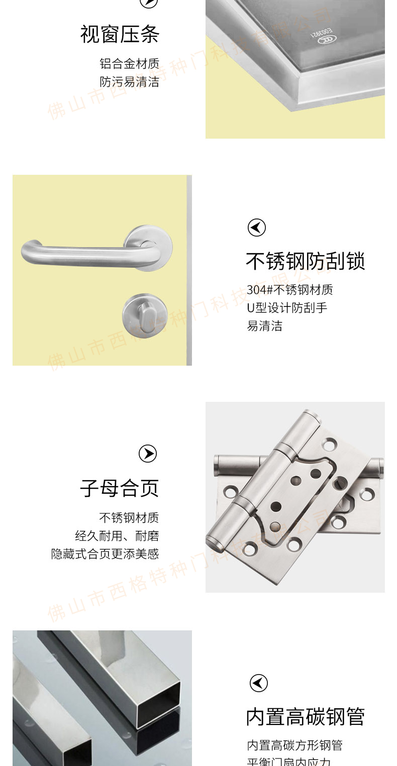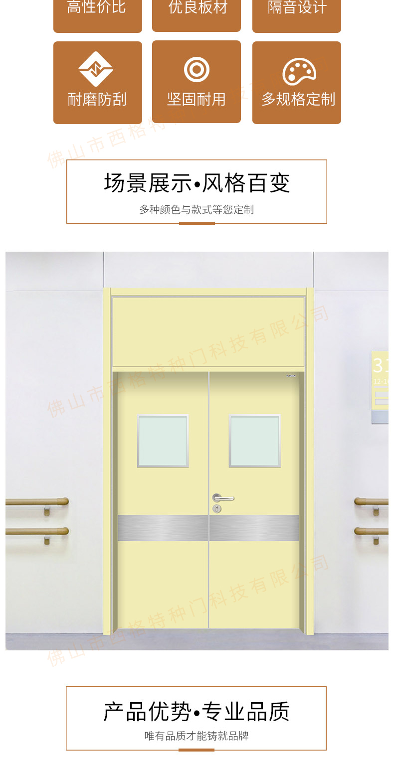產品簡介:chnsige西格特種門,專業生產醫院門,醫院診室門,醫院辦公室門,醫院衛生間門,木質醫院門,鋼質醫院門,多鐘款式、顏色,尺寸可定制。